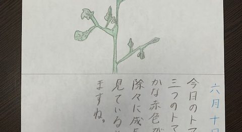 トマトの実が3つ色づきました❤成長の様子を見守り癒されています。