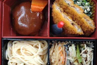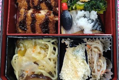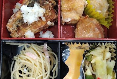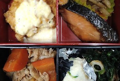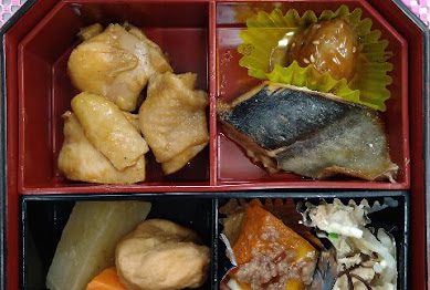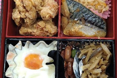 今日のメニューは鶏の唐揚げ・さばの味噌煮・千切り大根の煮物・ほうれん草のたまごカ...
