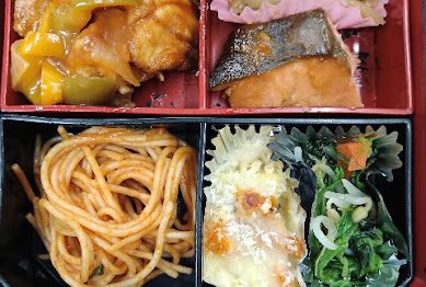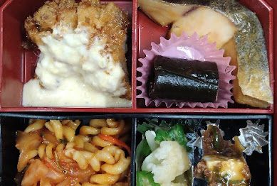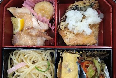 今日のえがお弁当は、チキンレモンペッパーステーキ・さばの竜田揚げ・里芋田楽・ペペ...