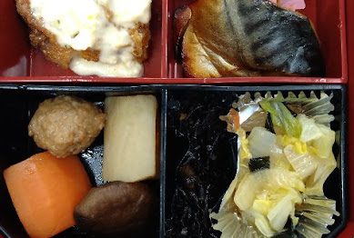 今日のメニューはチキン南蛮・さばのみりん焼き・里芋田楽・煮物・ひじき煮・白菜もみ...