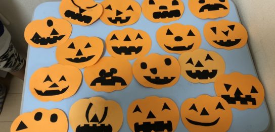 こんにちは! 今日は午前中は暑かったですね♪ 今日の活動は、10月の壁面制作をし...