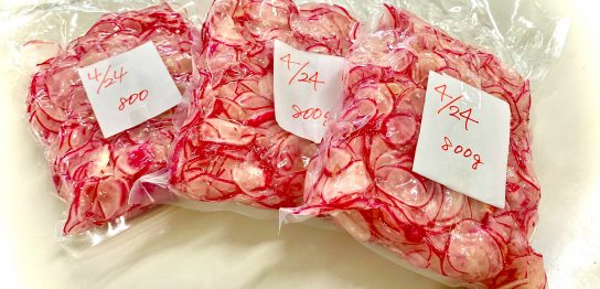 本日は、先日収穫したラディッシュをスライス加工しました。 今回は50m×3畝に植...