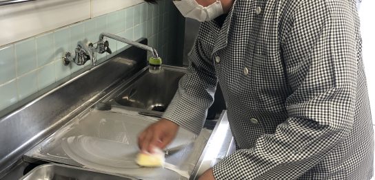 午前中は、バイキングの準備が中心ですが、終われば厨房機器等の清掃をしております(...