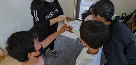 こんにちは!☺ 今日の自由遊びの時間は、昨日の活動で使った風船で風...