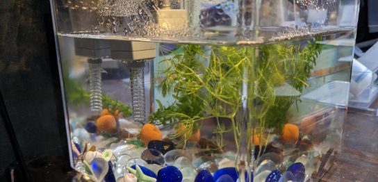 事業所で飼っているメダカの話です。 数が減って1匹になって(何故かタニシは増えて...