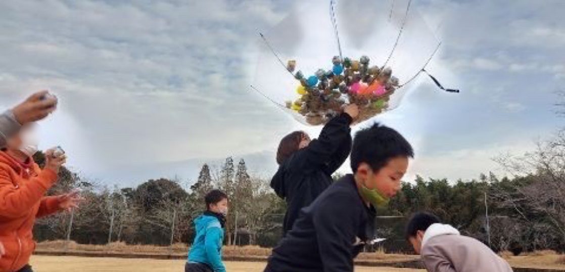 ビニール傘は運動会の時の籠よりも口が大きいので狙いやすく、低学年から高学年まで楽しく活動することができます😁