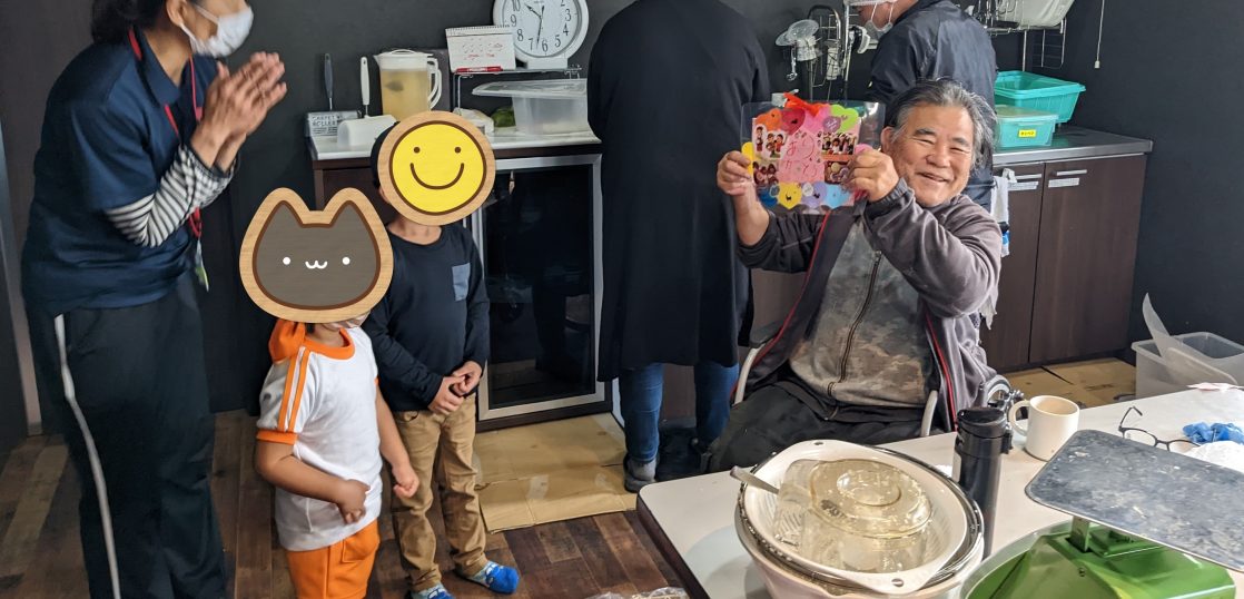 就労継続支援B型 事業所見学 2022年11月23日 B型事業所に「児童発達支援事業所きぼうがおか」を利用中のお子様2人が見学に来られました。手作りのカードを持参され、ご利用者さんに手渡し色んな質問もされていました。 手作りのかわいいカードをもらいました! ご利用者さんもかわいいお客さんの訪問にニコニコして喜んでいました。 また遊びに来て下さい♪