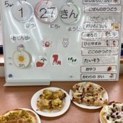 「タマネギはどこかな?」、「ひき肉はどれかな?」など、職員の言葉を聞きながら、がんばって食材を見つけてくれましたよ😊