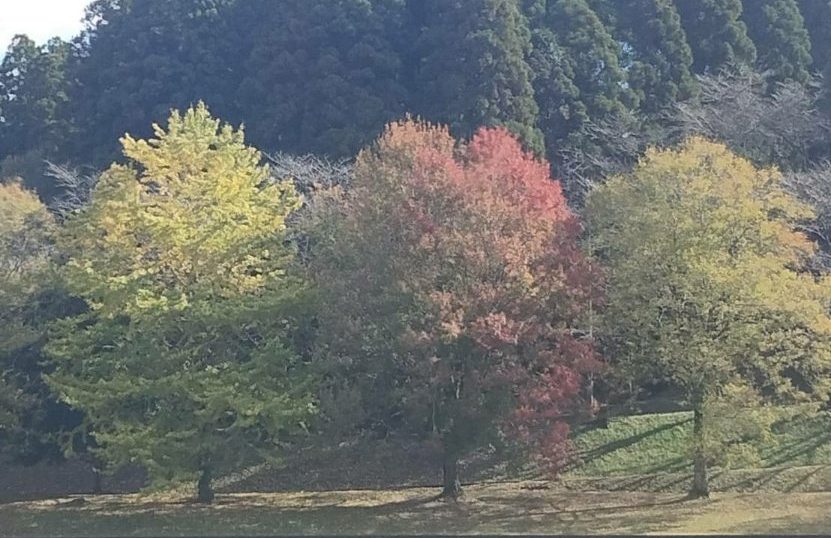 えがおの里GH餅原 旭ヶ丘運動公園へ散歩がてら出かけました。👯 2023年11月18日 朝食後紅葉を期待して旭ヶ丘運動公園へ行きましたが🥶🥶🥶 高千穂の頂上に雪がありよけいに寒く感じ、急ぎ足👣👣👣 紅葉もまだなようでした🍁 まだ少し早いのかイマイチの紅葉でした。