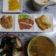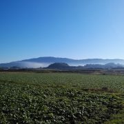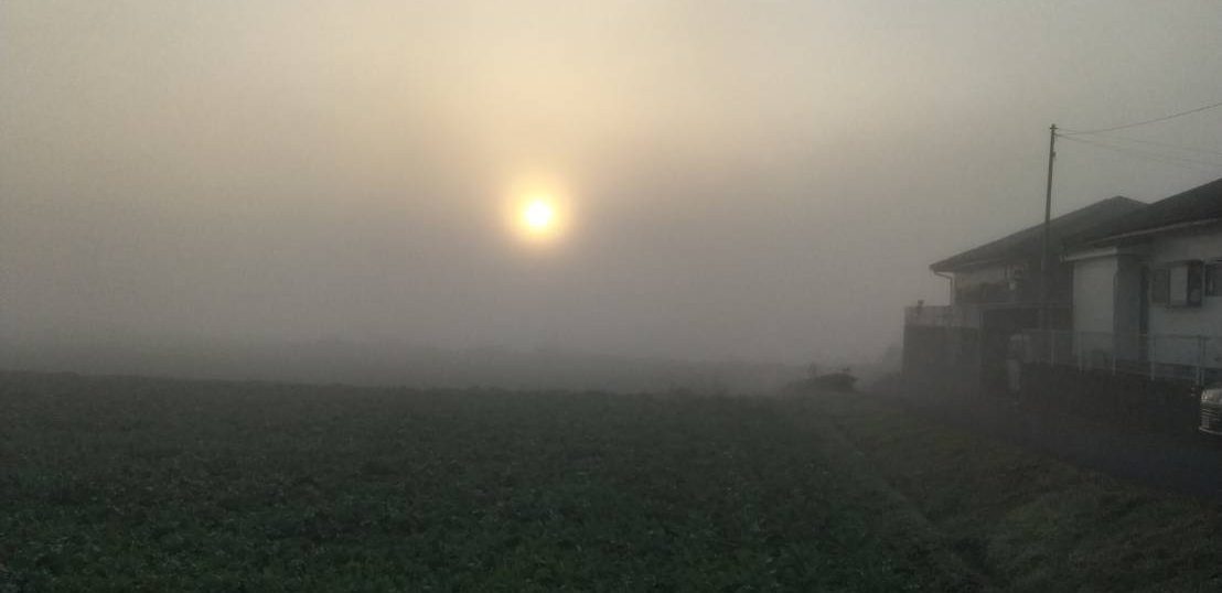 えがおの里GH餅原 朝は前がみづらい位の霧でした 2023年11月21日 利用者さんが散歩の途中で撮ってくれました 今朝はホットケーキにコーンスープ🌽ミカン🍊 夕飯はイカフライ、茄子の揚げ浸し、春雨サラダ、野菜多めの健康食でした。