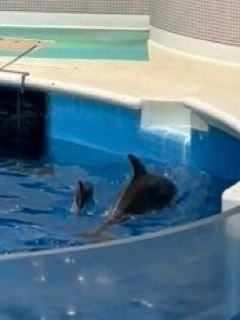 母イルカのマールは2人目の子どもということもありべったりではなく離れて様子を見たり危ないことをしたら音を出しすぐに駆け付けるという余裕のある育児をしているとのことでした!