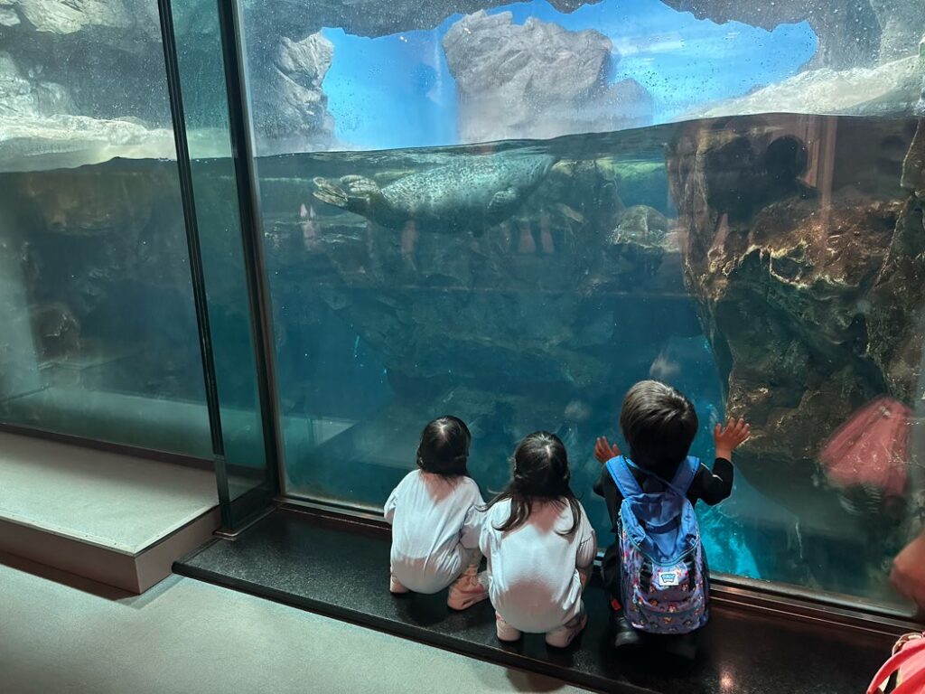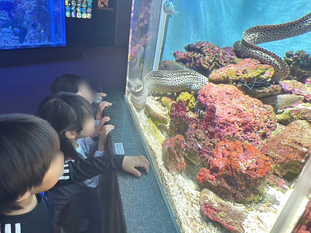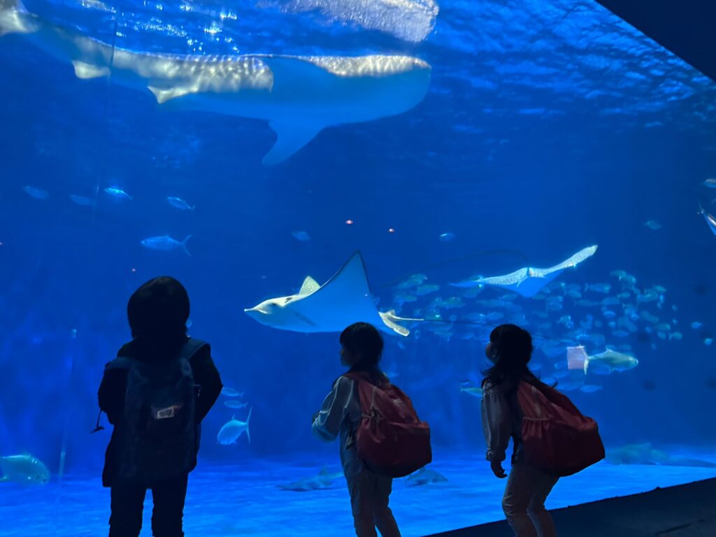 水族館に着くと、大きな水槽に広がる海の世界に、目をまるくする子どもたち。