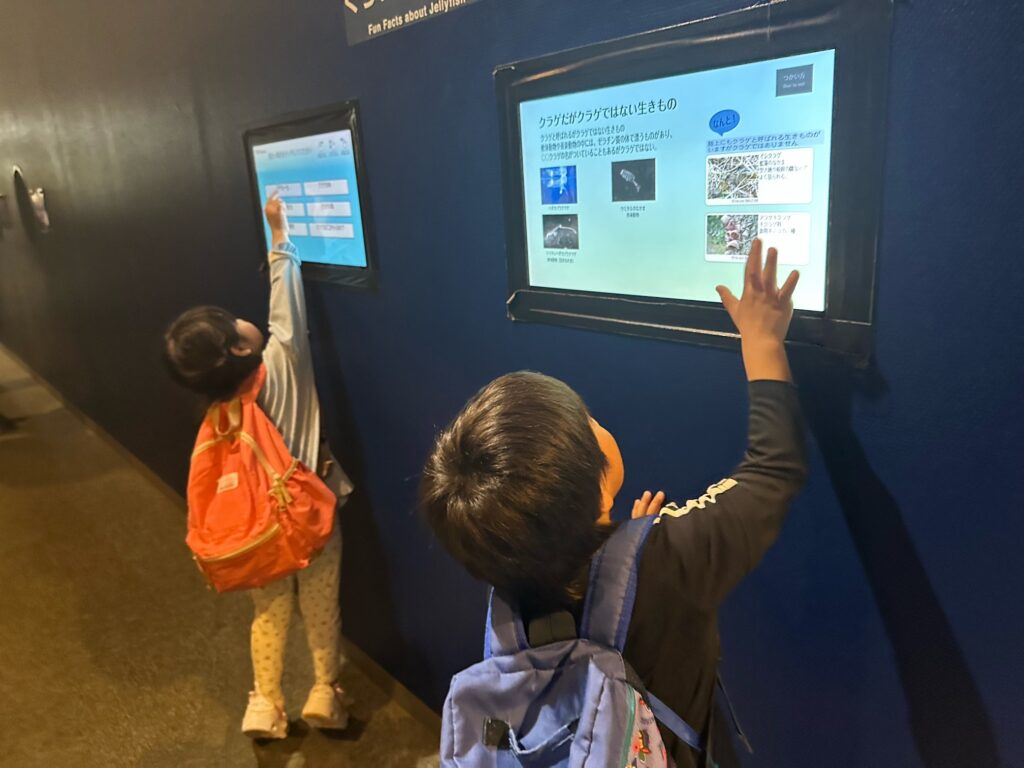 「わあ!サメだ!」「この魚、虹色できれい〜!」と、大興奮の様子😊