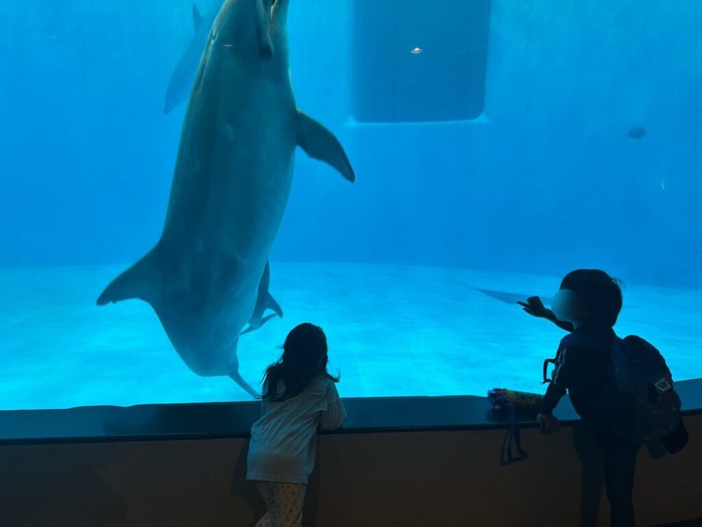 イルカの動きに合わせて拍手をしたり、じーっとクラゲを眺めたり…。