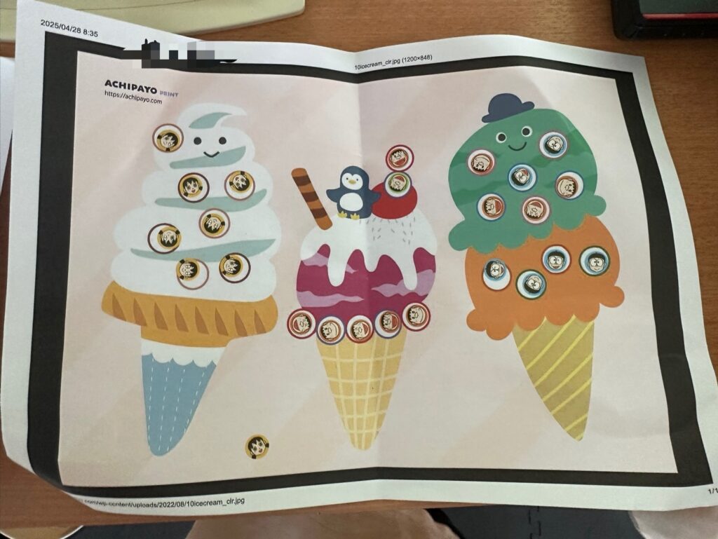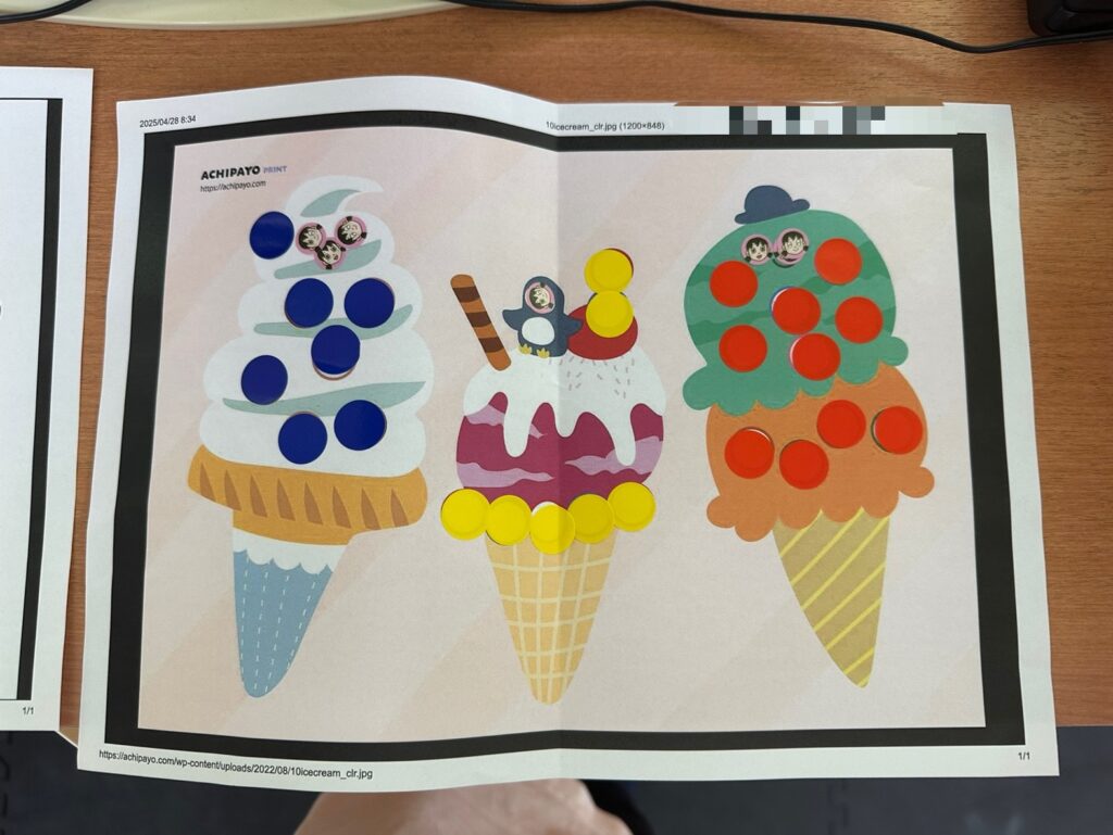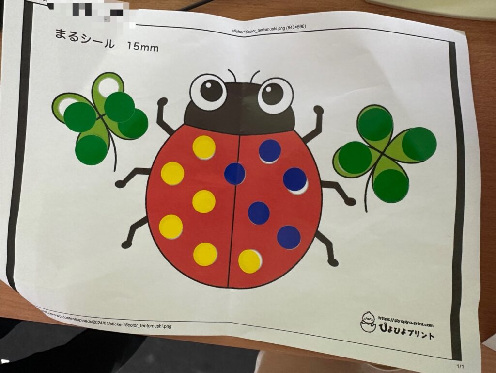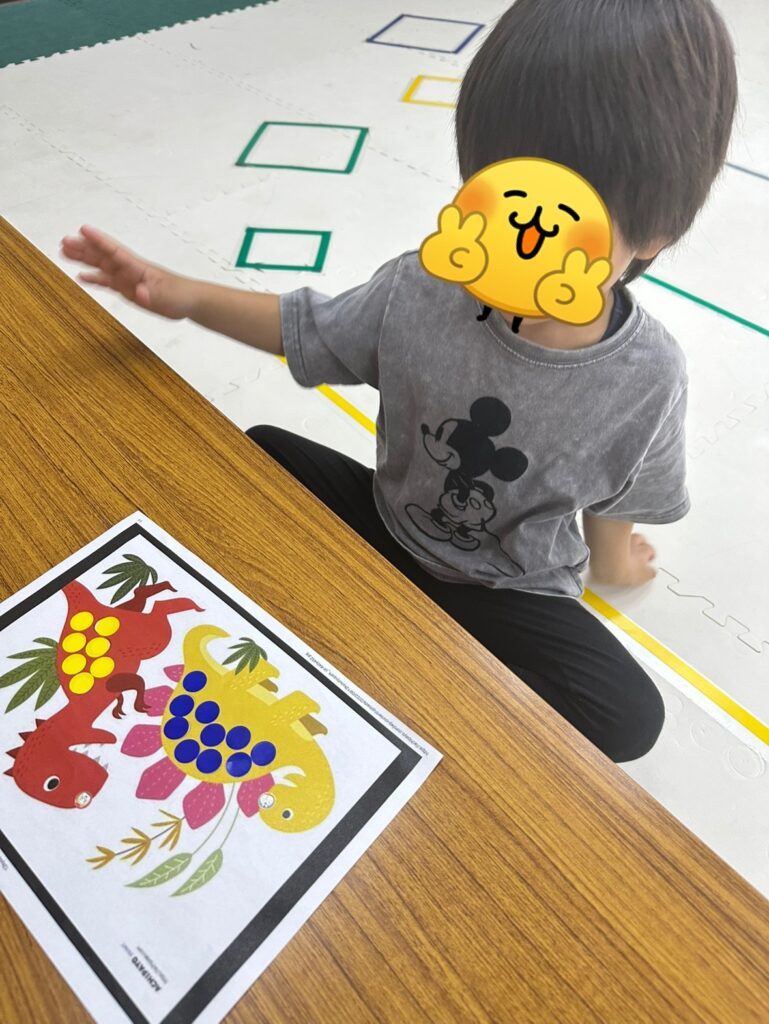 小さな丸の中にシールを貼ったり、イラストに合わせてシールを貼ったりと、集中して取り組む姿がたくさん見られました🌟