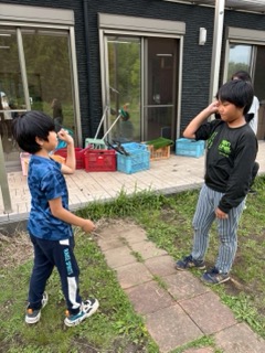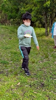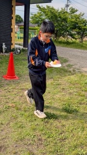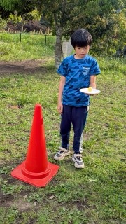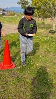 紙皿の上にピンポン玉を乗せて、バランスを取りながら慎重に進むゲームです。タッチして次の人にバトンタッチすると、なんと…ピンポン玉が1つ増えていくというルール!最後にはかなり難易度が上がっていましたが、子どもたちは集中して頑張ってくれました😊