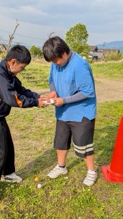 今日のメインイベントは【ピンポン玉リレー】!