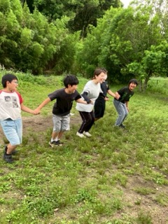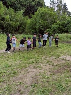 この活動は、話をよく聞き、自分で考えて行動する力を育てることや、注意力・聞く力・衝動のコントロールを楽しく身につけることを目的としています。さらに、友達と手をつなぐ場面もあるため、力加減や他者への思いやりも自然と学べる活動です。