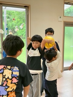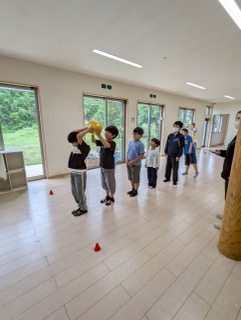 今回は、みんなで「ボール送りゲーム」を行いました!