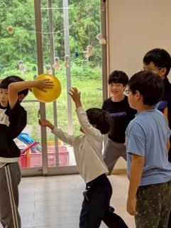 ゲームが始まると、子どもたちは自然と「いくよ!」「ナイス!」「がんばって!」と声を掛け合いながら取り組む姿が見られました。ボールを落としてたり渡し方を間違えてしまい、最初からやり直しになる場面もありましたが、誰もあきらめることなく、最後まで前向きな気持ちでチャレンジし続けていました。
