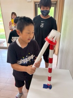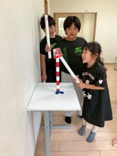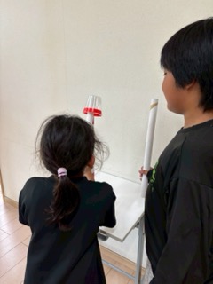 なんと今回のコップリレーは、長さ50cmの筒を使って行いました!