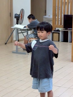 うちわで一生懸命あおぎながら、次の友達へ急いでパスする姿、周りをよく見てぶつからないように動く姿など、どの子も真剣そのもの。
