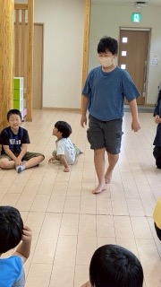 友達の動きをよーく観察して「ハンバーガーだ!」「それってホッピング?」と元気な声が飛び交い、大盛り上がり!支援員は基本見守りつつ、少しだけヒントを出してサポートしました😊