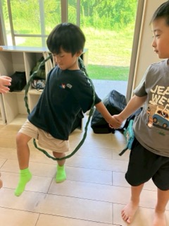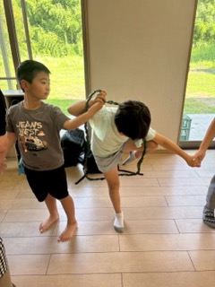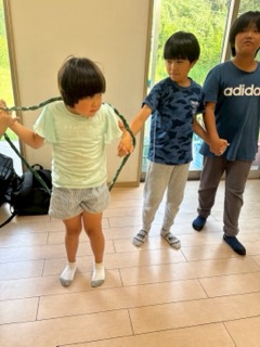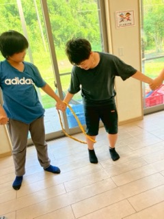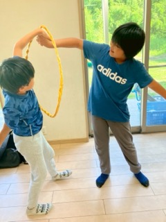 ②3種類の大きさのわっかをみんなの体を通って最後の友達までいけばゴールです✨