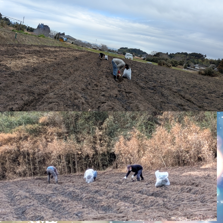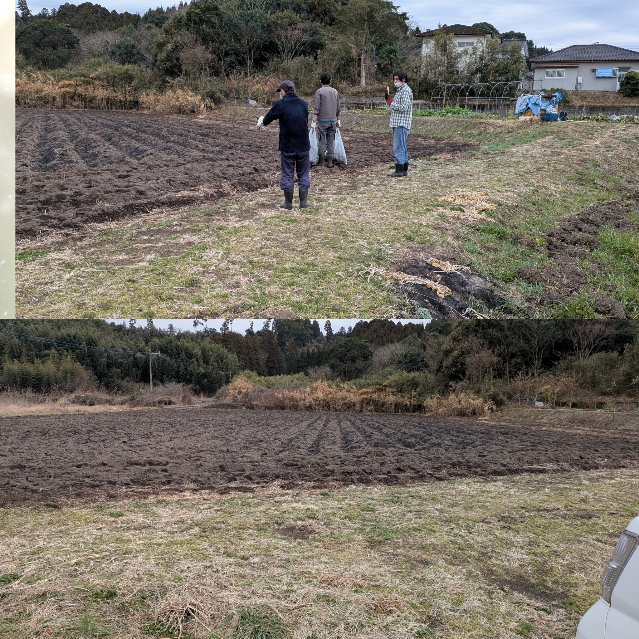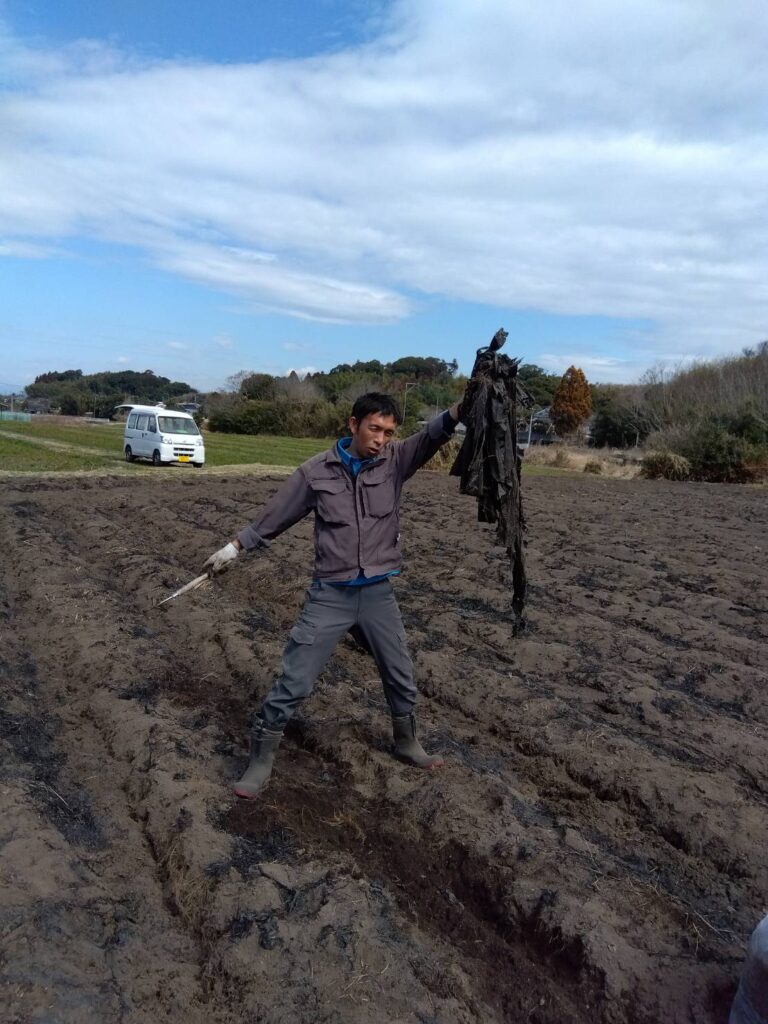 みまた就労継続支援えがおの里三股就労継続支援B型 委託作業 2026年2月20日 提携している農家さんにて作業4日目…晴天の中今日はK職員さん入れて4人で力を合わせてマルチ取り除きをしました! 広~い畑です! 地道にコツコツと・・・ こんなにも長~いマルチ取り除きました! (≧∇≦)ノ■とったぞ~♪