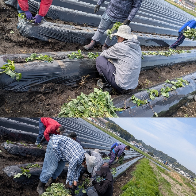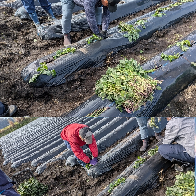 みまた就労継続支援えがおの里三股就労継続支援B型 委託作業 2026年4月3日 晴天の中今日・・・提携している農家さんにて、K職員さん・T職員さん入れてB型全員で🍠サツマイモの苗植えを力を合わせて頑張りました!(≧∀≦)ゞ 上記、社長さんに、教えてもらって実践❕