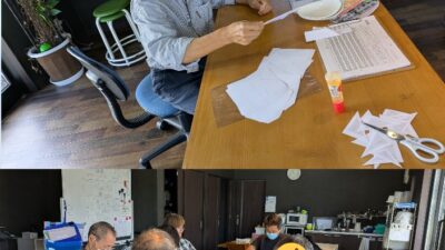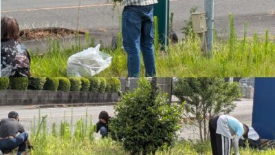 提携している農家さんのところにて、職員と一緒にきゅうり🥒の葉っぱ...