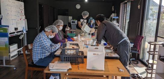 提携している農家さんのところにて、K職員さんとメンバー3人で力を合わせて葉っぱち...